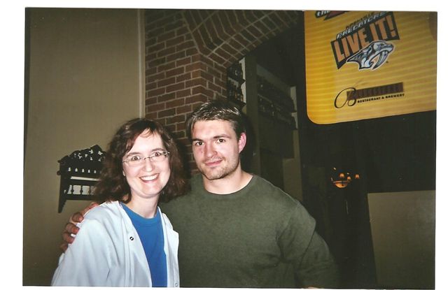 Darcy hosted a radio show during his time in Nashville. “The Darcy Hordichuk Show” aired between 6 and 7pm on The Zone 104.5, and was broadcast from the Blackstone, a local Nashville brew Pub. During the one hour show, Darcy welcomed guests, including his Predator teammates for hockey chats, plus during commercial breaks he took time to pose for pictures with fans, and sign autographs. One of Hordi’s biggest shows happened when Peter Forsberg was a guest. Marie (pictured above with Darcy) said there was a great turnout for that show.
