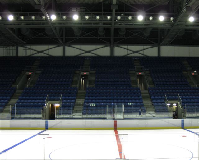 I took these pics a few weeks back when I stumbled across another film shoot in the spanky new 7200 seat arena. My cousin, Eastern Conference Lisa was visiting from Ottawa, and she managed to see almost all of the venues in various states of construction. This was the last one on her tour.